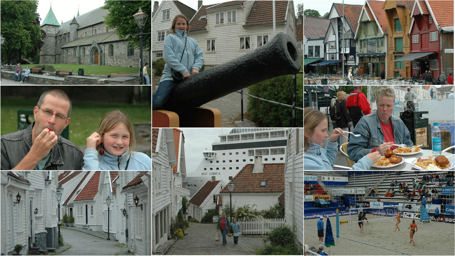 Am Dienstag ist das Wetter sehr bedeckt und wir schauen uns die Stadt Stavanger an. Wir fahren dafür über die 523 nach Norden bis Tau. Hier verkehrt eine Fährvebindung über die Inseln Sør- Hidle und Heng, wofür wir umgerechnet 22 Euro bezahlen. In der Stadt schauen wir in die romanische Domkirche aus dem Jahr 1125 hinein. Wir kaufen an einem Obststand Kirschen und Erdbeeren, die wir vor der Kirche verputzen. Am Fischmarkt vorbei wenden wir uns dem alten Stadtteil Gamle Stavanger zu. Völlig grotesk wirkt die Kulisse des gigantischen Kreuzfahrtschiffs Lirica aus Panama am Hafen, das die alten Holzhäuser wie ein Hochhaus überragt. Wir sehen uns das Norsk Hermetikkmuseum an. In dieser Fabrik wurde von 1880 bis 1960 Fisch in Handarbeit verarbeitet und in Dosen verpackt. Im Museumsbetrieb werden die Maschinen heute noch gelegentlich in Betrieb genommen.