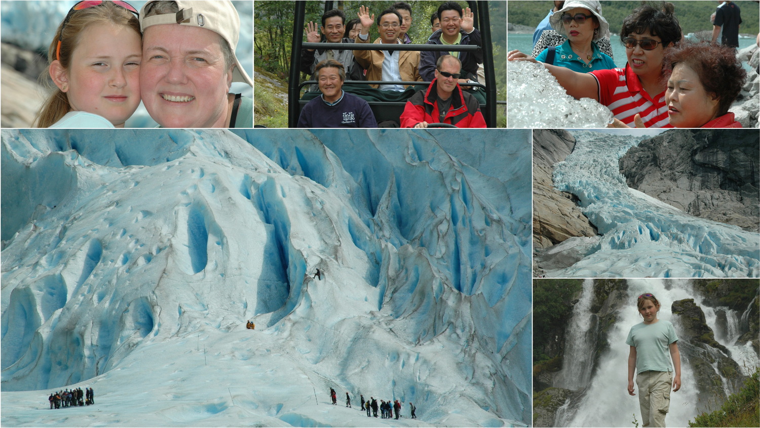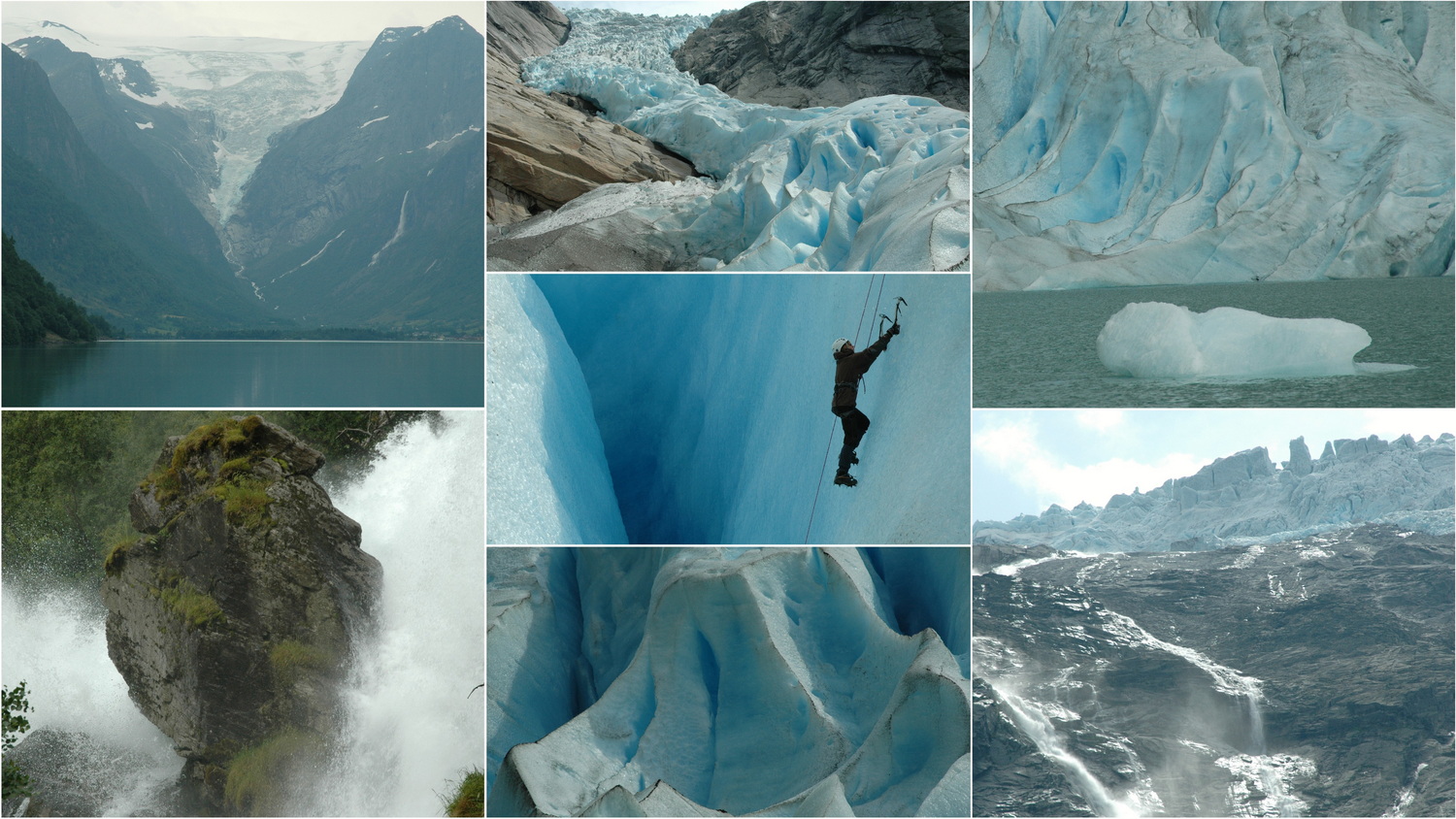 Am Montag gehe ich um 8:00 Uhr laufen, denn ich habe in diesem Jahr meinen ersten Marathon auf der Agenda. Vor zwei Jahren hat sich im Kreis von Kollegen und Kolleginnen eine Laufgruppe gebildet. Die Teilnahme an zwei Volksläufen und Halbmarathons mit vorzeigbaren Zeiten haben bei mir dann doch den Wunsch geweckt das Ganze auf Marathondistanz auszudehnen. Hier, in dem schönen Tal und den großartigen Landschaften Norwegens habe ich die nötige Motivation daran zu arbeiten. Am langestreckten See Oldevatnet entlang fahren wir danach zum südlichen Talschluss nach Briksdalsbre. Mit einem gut einstündigen Aufstieg laufen wir zu einem der mächtigen Gletscherabbrüche des Jostedalsbreen, in dessen Gletschersee einige kleine Eisberge schwimmen. Elektrofahrzeuge ermöglichen es auch fußlahmen Besuchern hier hinauf zu gelangen.