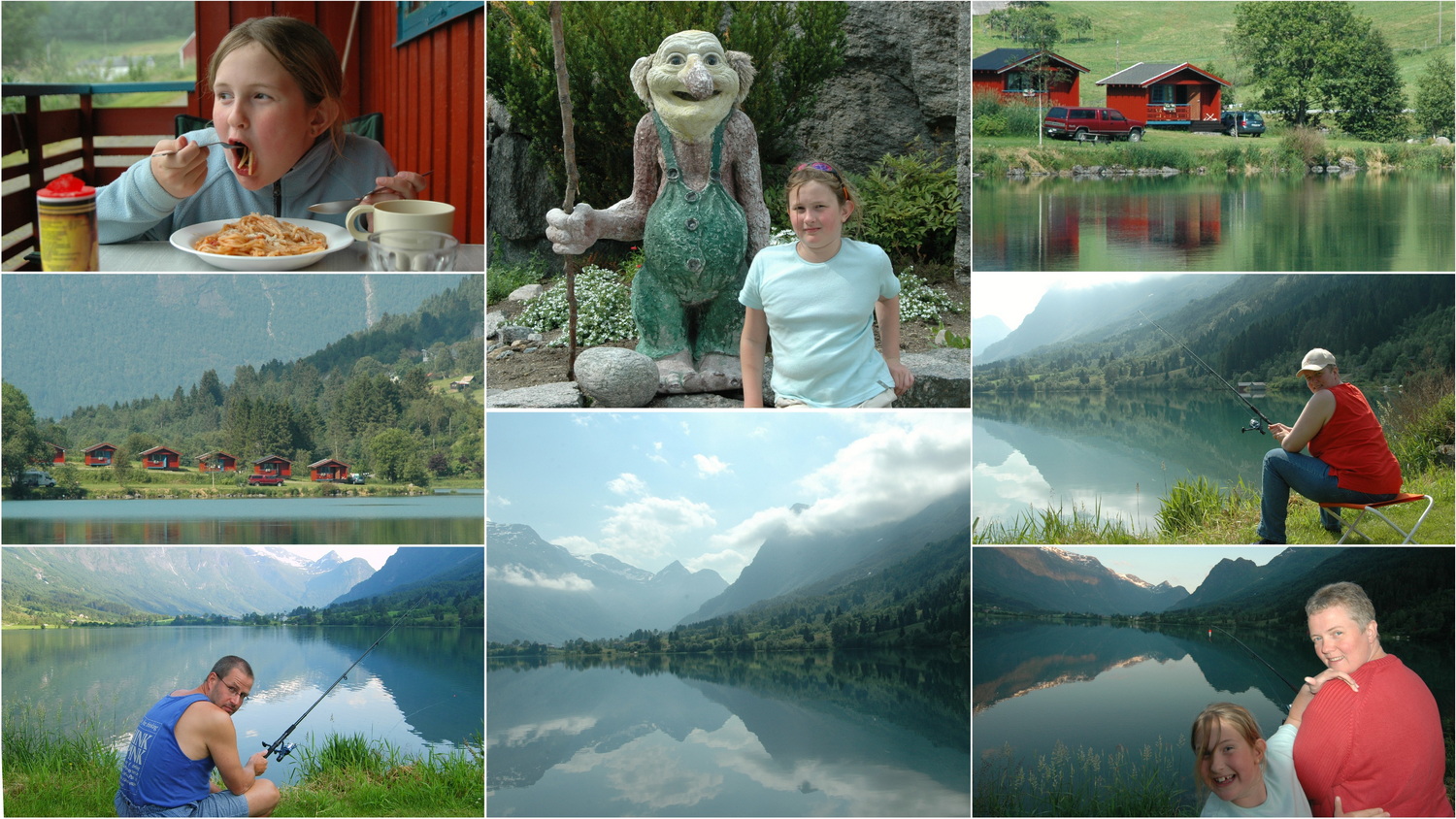 Wir folgen der 51 weiter nach Fagernes am Ostende des Strondafjords im Valdrestal. Auf den großen Campingplätzen sind sie wieder, weiße Kisten in Reih und Glied, zwischen denen wir unser Zelt nicht aufbauen möchten. Wir fahren ein Stück am Nordufer des Strondafjords entlang und finden unser Paradies für die nächsten 3 Tage. Unterhalb der E16 erstreckt sich eine weitläufige Wiese mit insgesamt 17 Hütten direkt am Ufer des Fjords. Westlich blicken wir auf die Strand Kyrkje, auch eine Bushaltestelle an der Hauptstraße heißt so. Der Fjord, der eigentlich heute ein See ist lädt bei sommerlichen Temperaturen zum Bad ein. Das Wasser ist sehr erfrischend, aber erträglich und wenn man erst einmal drin ist wunderbar. Auch heute wird gegrillt und da es beim Spielen einfach nicht dunkel werden will kommen wir wieder nicht vor Null Uhr ins Bett.