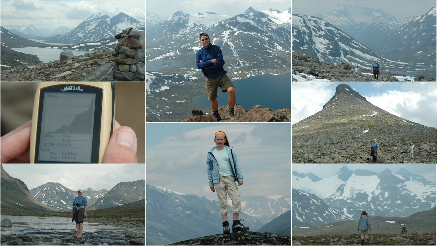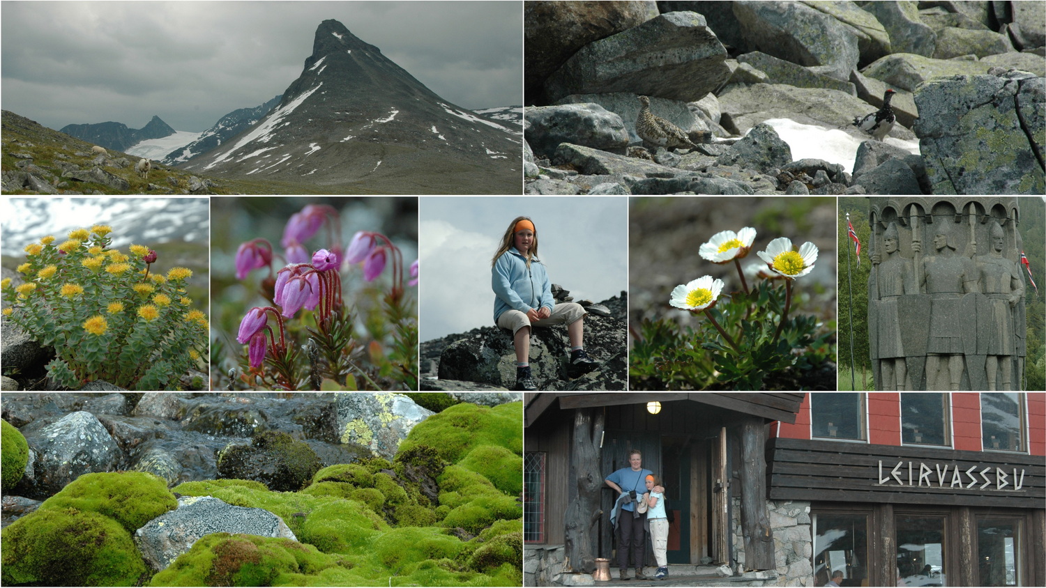 Wir haben gut geschlafen in unseren Betten und stehen am Donnerstagmorgen um 8:00 Uhr mit dem Wecker auf. Um 9:15 Uhr brechen wir auf und fahren über Lom auf die 55 Süd bis zum Abzweig einer Mautstraße, über die wir nach Leirvassbu im Jotunheimen-NP fahren. Hier parken wir an einem Hotel am Leirvatnet und machen uns an eine Wanderung zum Berg „Kyrkja“, einem markanten Gipfel mit einer Höhe von 2032 Metern. Im Rother-Wanderführer Norwegen Süd ist es Tour 28, die hin und zurück mit je zwei Stunden angegeben ist. Um 11:00 Uhr gehen wir los und finden den Weg nicht wie beschrieben vor. Wir steigen über einen Felsgrat südlich des Sees auf bis zum Südsattel der Kyrkja auf etwa 1755 Meter. Anne und Doro wollen hier auf mich warten und so mache ich mich allein an den Aufstieg der etwa 300 Höhenmeter bis zum Gipfel. Es ist im Gipfelbereich schon ein ausgesetztes Klettergelände, der Ausblick auf die umliegenden Berge des Jotunheimen- NP ist absolut grandios. Für die Aktion brauche ich etwa 75 Minuten bis ich zu Anne und Doro zurückkehre.