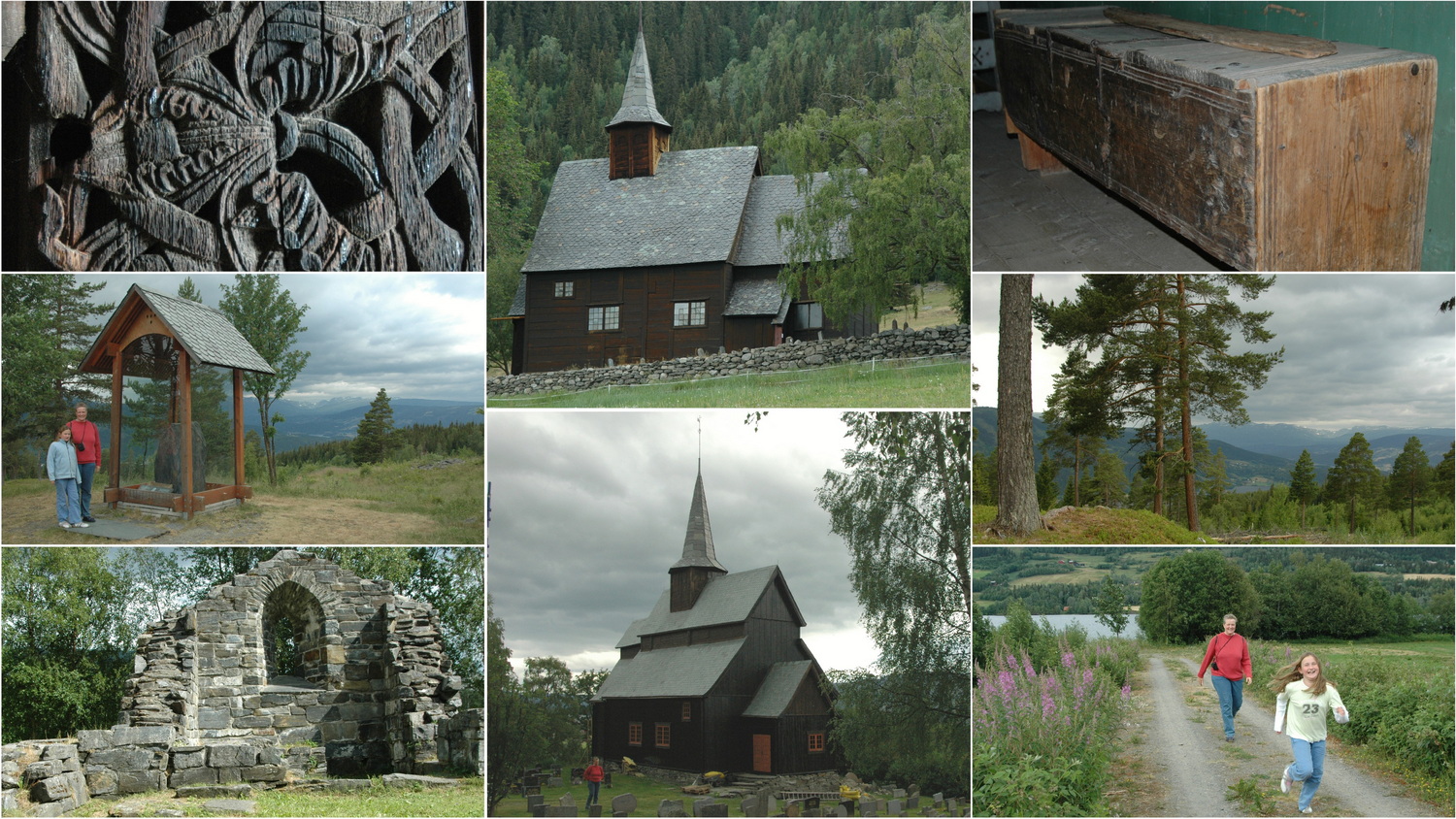 Das Wetter am Sonntag ist bedeckt und es hat nachts sogar etwas geregnet. Ich laufe heute Morgen ein Stück Richtung Fagernes und suche mir dann über eine Schotterstraße einen Rückweg über ein paar Bauernhöfe am Hang zurück zu unserem Camp. Bei meiner Rückkehr nach 90 Minuten meldet sich die Sonne zurück. Nach einem Bad im See wird gefrühstückt, allerdings bewölkt es sich wieder zunehmend, nach einem sonnigen Badetag sieht es für heute nicht mehr aus. Wir fahren über die E16 am Nordufer des Strondafjords und des angrenzenden Slidrefjords in nordwestlicher Richtung nach Lomen. Hier besuchen wir die kleine Stabkirche aus der zweiten Hälfte des 12. Jahrhunderts. Bei archäologischen Grabungen wurden Schmuck und Münzen aus der Entstehungszeit gefunden. In der Kirche befindet sich eine Holzkiste aus der Wikingerzeit um 300 n.Chr. und die Kopie eines mittelalterlichen Marienkopfes. Eine weitere kleine Stabkirche aus der gleichen Zeit befindet sich etwas weiter nordwestlich in Høre. Hier finden leider Bauarbeiten statt, so dass wir weder das Innere der Kirche, noch den Runenstein sehen, der eine geschichtliche Einordnung zulässt. Da heißt es: „In diesem Sommer, als die Brüder Erling und Audun die Bäume für diese Kirche fällten, fiel Earl Erling in Nidaros“. Der norwegische Häuptling Erling „Shakke“ Ormsson fiel 1179 in der Schlacht von Kalvskinn in Trondheim. Die Stadt Trondheim wurde 997 als Nidaros gegründet.
