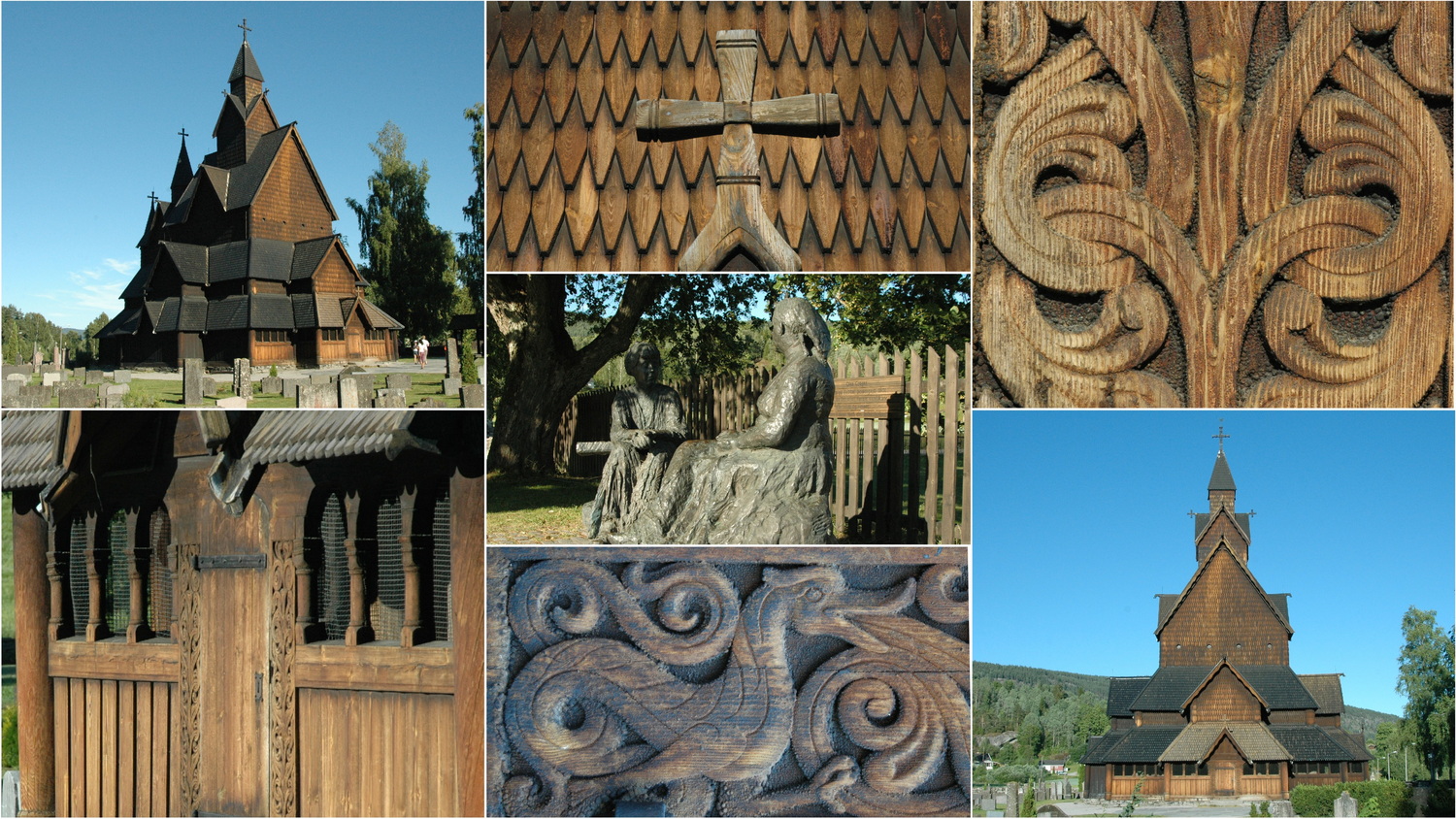 Am Montag beginnt unsere dritte Urlaubswoche nach dem Frühstück mit dem Ausräumen der Hütte an unserem schönen Fjordufer. Wir hatten hier ein paar sehr schöne Tage, um 10:30 Uhr fahren wir nach Fagernes und kaufen ein. Wir folgen wieder der E16 Ost bis Leira und biegen dann mit Kurs Süd auf die 51 bis Gol ab. In Gol gibt es eine dreistöckige Stabkirche mit Turmaufbau. Was wir hier aber vorfinden ist eine Kopie der Kirche, deren Original vom Beginn des 13. Jahrhunderts 1884 zerlegt und im Norsk Folkemuseum auf der Halbinsel Bygdøy in Oslo nach dem Vorbild der Stabkirche von Borgund wiederaufgebaut und rekonstruiert wurde. Grund für den Standortwechsel war der geplante Abriss der Kirche in den 1870er Jahren. Mit der Annahme des Christentums wurden die ersten Holzkirchen bereits im 10.Jahrhundert in Norwegen errichtet. Mit der Verarbeitung von Fichtenholz kannten sich die Wikinger aus und wussten welches Holz, wann gefällt, wie verarbeitet und in welcher Bauweise eingesetzt so widerstandsfähig ist, dass einige Konstruktionen die letzten 900 Jahre überdauert haben.