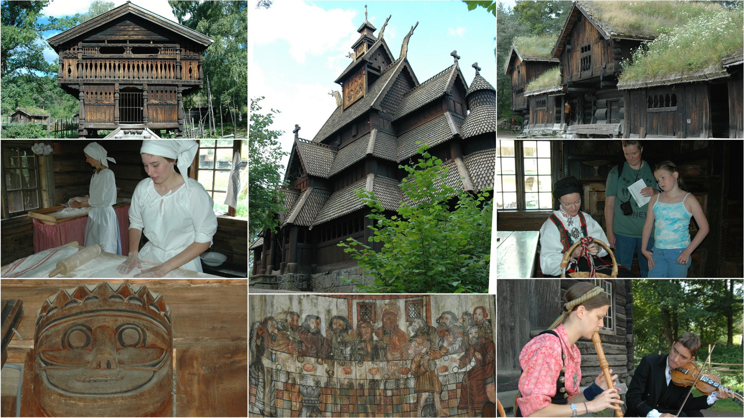 Es ist Donnerstag und wir stehen wieder früh auf, um uns vor unserer Verabredung um 12:00 Uhr noch das Norske Folkemuseum auf der Museumsinsel besuchen. In erster Linie wollen wir uns dort, die aus dem Hallingdal versetzte Original- Stabkirche von Gol anschauen. Sie bildet bis heute mit vielen historischen Gebäuden ein Ensemble traditioneller Häuser Norwegens. Die Stabkirche von Gol kam bereits mit der Gebäudesammlung König Oskars II im Jahr 1884 auf die Halbinsel. Der Bibliothekar Hans Aall gründete 1894 ein Museum in Christiania, wie Oslo von 1624-1924 hieß, wobei er das Grundstück auf Bygdøy erst 1898 erwarb. Der Besuch der Kirche von 1170 mit ihrer später entstandenen Innenausmalung und der historischen Holzhäuser aus vielen Regionen Norwegens ist sehr lohnenswert. Wir sehen Musik- und Tanzdarbietungen und schauen Frauen und Männern bei traditionellen, handwerklichen Tätigkeiten zu. Mit der Buslinie 30 und 20 machen wir uns um 11:30 Uhr auf zum Vigelands- Park, den die Osloer eher als Frognerpark bezeichnen.