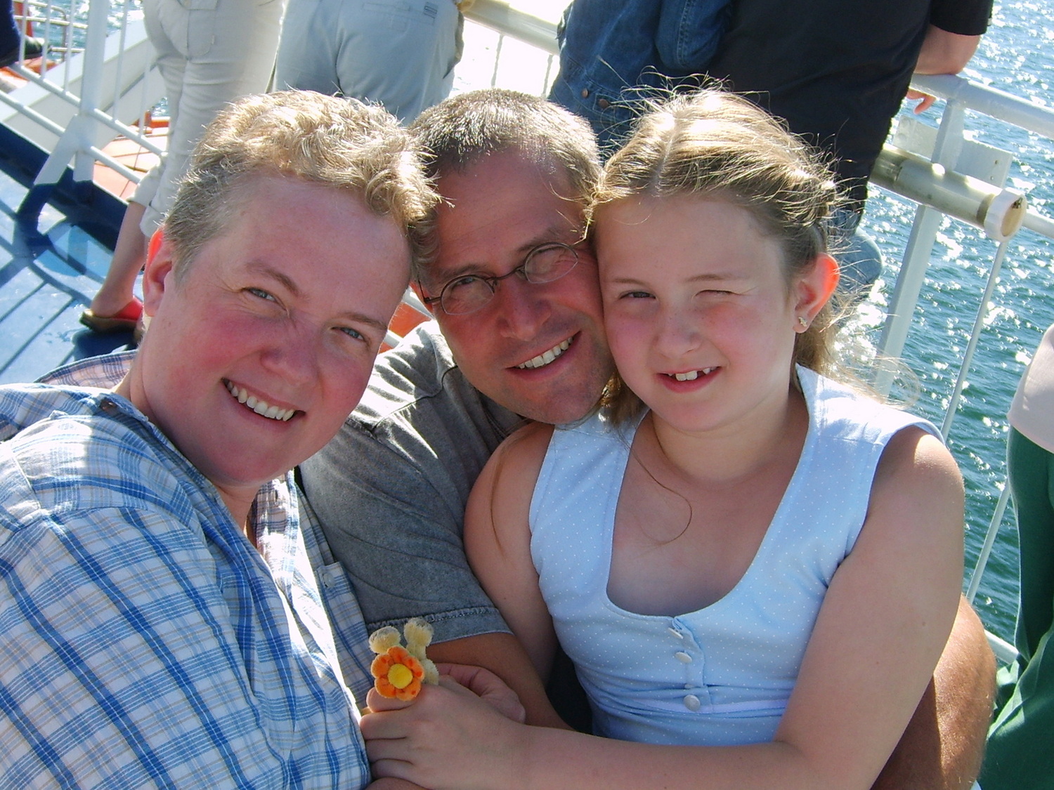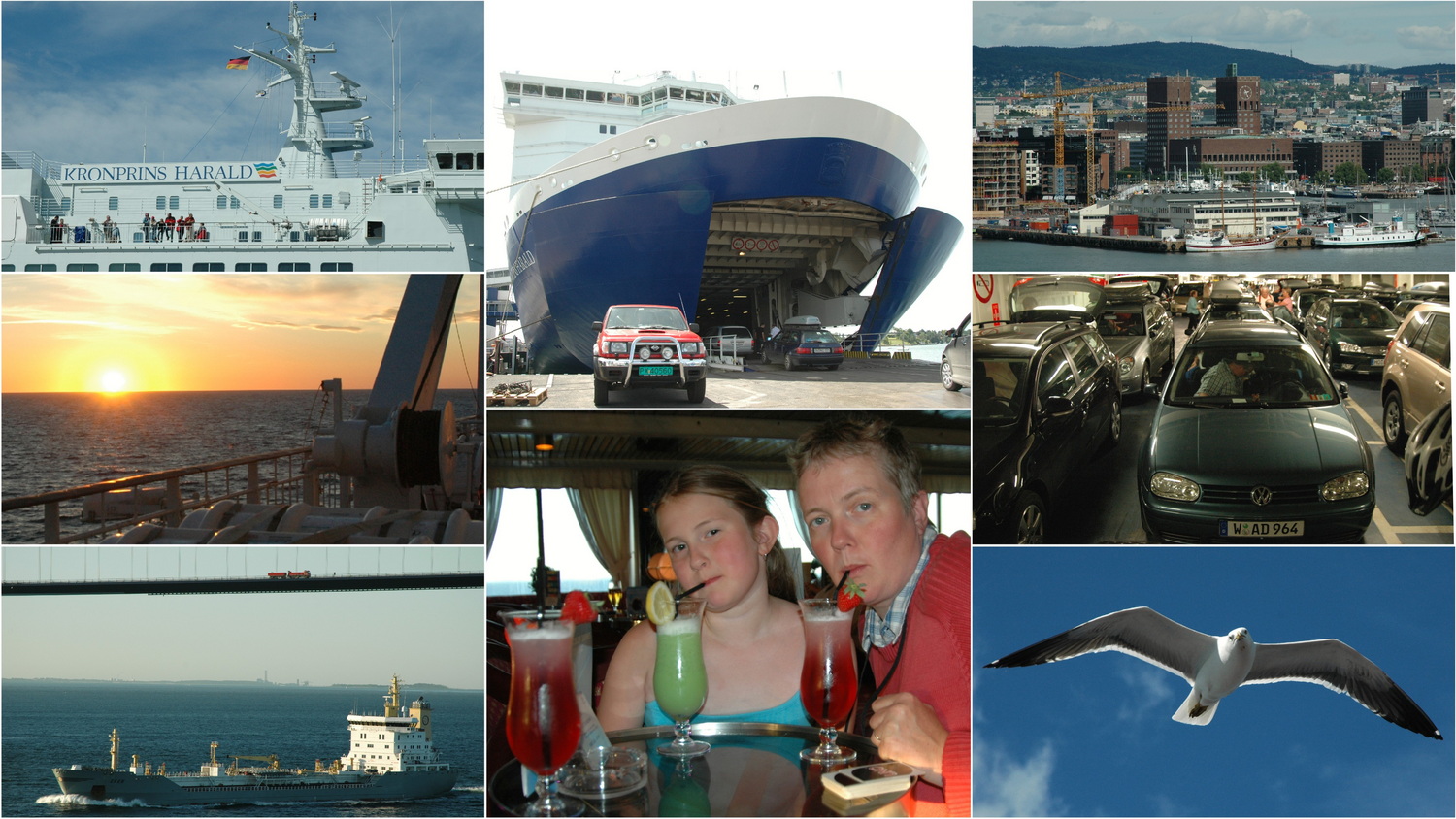 Das Schiff trägt den Namen „Kronprinz Harald“ und hat, wie wir erfahren einen Maschinenschaden, wodurch es mit reduzierter Kraft fährt. Wir haben eine geräumige 4-Bett- Innenkabine und verbringen erst einmal einige Stunden auf dem Sonnendeck. Die Fahrt durch den Oslofjord ist bei dem heutigen Sommertag purer Genuss. Auch das reichhaltige Buffet, dem wir uns gegen 17:30 Uhr widmen macht bei einem Preis von 30 € (Kinder15 €) Spaß. Wir betrachten an Deck noch den Sonnenuntergang gegen 20:00 Uhr und lassen uns vom Rollen des Schiffs in den Schlaf begleiten. Ich stehe am Morgen sehr früh auf um die Durchfahrt durch die Öresund- Brücke zwischen Kopenhagen und Malmö zu erleben. Mit einer Gesamtlänge von 7,85 Kilometern verbindet das Bauwerk mit einer maximalen Schiffs- Durchfahrtshöhe von 55 Metern seit dem Jahr 2000 Dänemark mit Schweden. Wir laufen am Vormittag in Kiel ein und erreichen gegen 16:30 Uhr unser zu Hause. Es ist Annes 9. Geburtstag und den feiern wir am Sonntag nach dieser schönen Reise im Garten mit den Omas, dem Opa und der Familie natürlich mit vielen Geschenken.