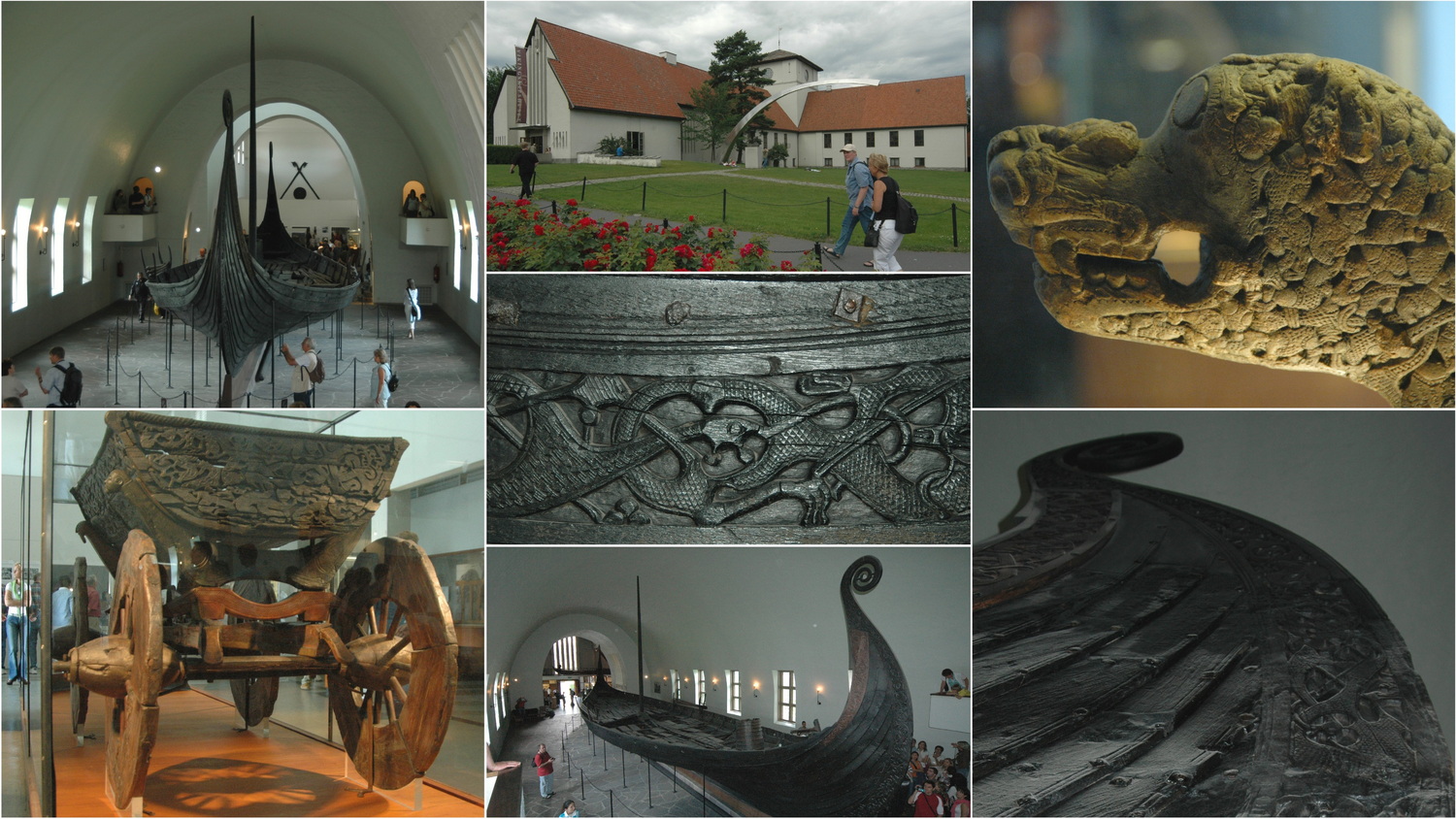 Absolutes Highlight der Museumsinsel ist das Wikingerschiff- Museum mit seinen Wikingerschiffen aus dem 9. Jahrhundert, das wir auf der Insel mit dem Bus erreichen. Das berühmteste der ausgestellten Schiffe ist das Osebergschiff, das 1904 unter einem Grabhügel gefunden wurde. Der Grabhügel befand sich auf dem Gelände des Oseberg- Hofs am westlichen Ufer des Oslo- Fjords. Hinter dem Mast fand man zwei Frauengebeine, die mit dem Schiff beigesetzt wurden. Es ist der reichste und wichtigste Fund aus der Wikingerzeit nach den Funden des Tune-Schiffs 1867 und dem Gokstad-Schiff 1870, die ebenfalls hier ausgestellt sind. Die Eichen für den Bau des 22 Meter langen und 5 Meter breiten Schiffs wurden im Jahr 820 gefällt.