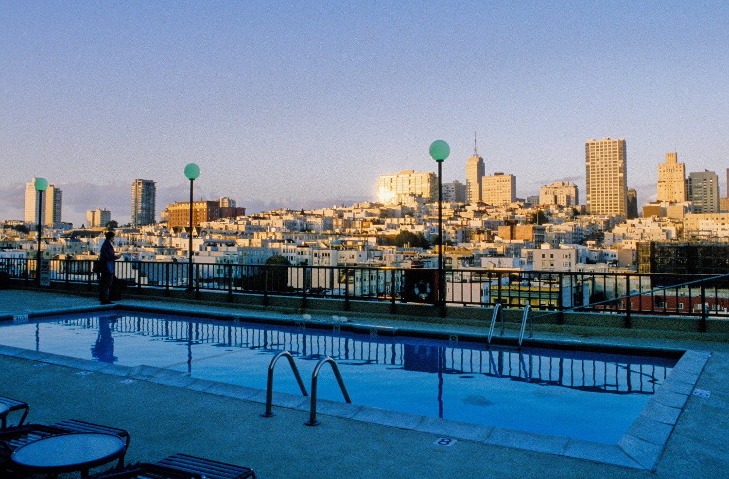Unser Leihwagen ist nicht der vorgebuchte Economy- Car. Ungefragt erhalten wir mit einem kostenlosen Upgrade einen Buick- Century, einen Sechs- Zylinder- Straßenkreuzer, mit dem wir nun den Südwesten Amerikas erkunden werden. Für 1,65 DM (heute 0,84€) bekommen wir 1 US-Dollar, auch die Spritpreise sind 1994 in den USA noch kein Thema, für 1 US-Dollar gibt es mit einer Gallone rund 3,8 Liter in den Tank. Hätte es den Euro schon gegeben wären das umgerechnet traumhafte 22 Cent/Liter. Auf der Interstate 101 gleiten wir in Richtung San Francisco- Downtown. Unser erstes Hotel (Holiday Inn) liegt am „Golden Gateway“, der Van Ness Avenue. Wir beziehen unser Zimmer im 18. Stock mit Blick Richtung West.