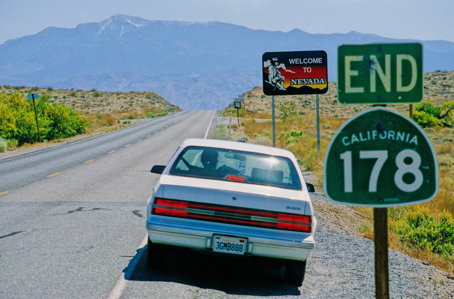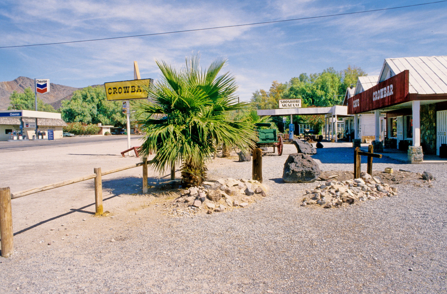 In kurzer Hose und T- Shirt gehe ich vielleicht 200 Meter hinaus auf den schneeweißen Salzsee. Wir befinden uns in einem Glutofen, in dem die Temperaturen extreme Werte erreichen können. Wir schwitzen sehr bei diesem kurzen Ausflug und viel schlimmer- ich habe mir arg die Beine verbrannt. Mit Kurs Süd überwinden wir den Jubilée- Pass und den Salsberry Pass 1002m auf unserem Weg nach Shoshone, wo wir in einem kleinen Motel einchecken. Was Gutes zu essen gibt es direkt gegenüber in Buggy’s Café. Shoshone hat sich etwas Wild-West- Flair bewahrt, der Sheriff fährt aber schon einen Streifenwagen.