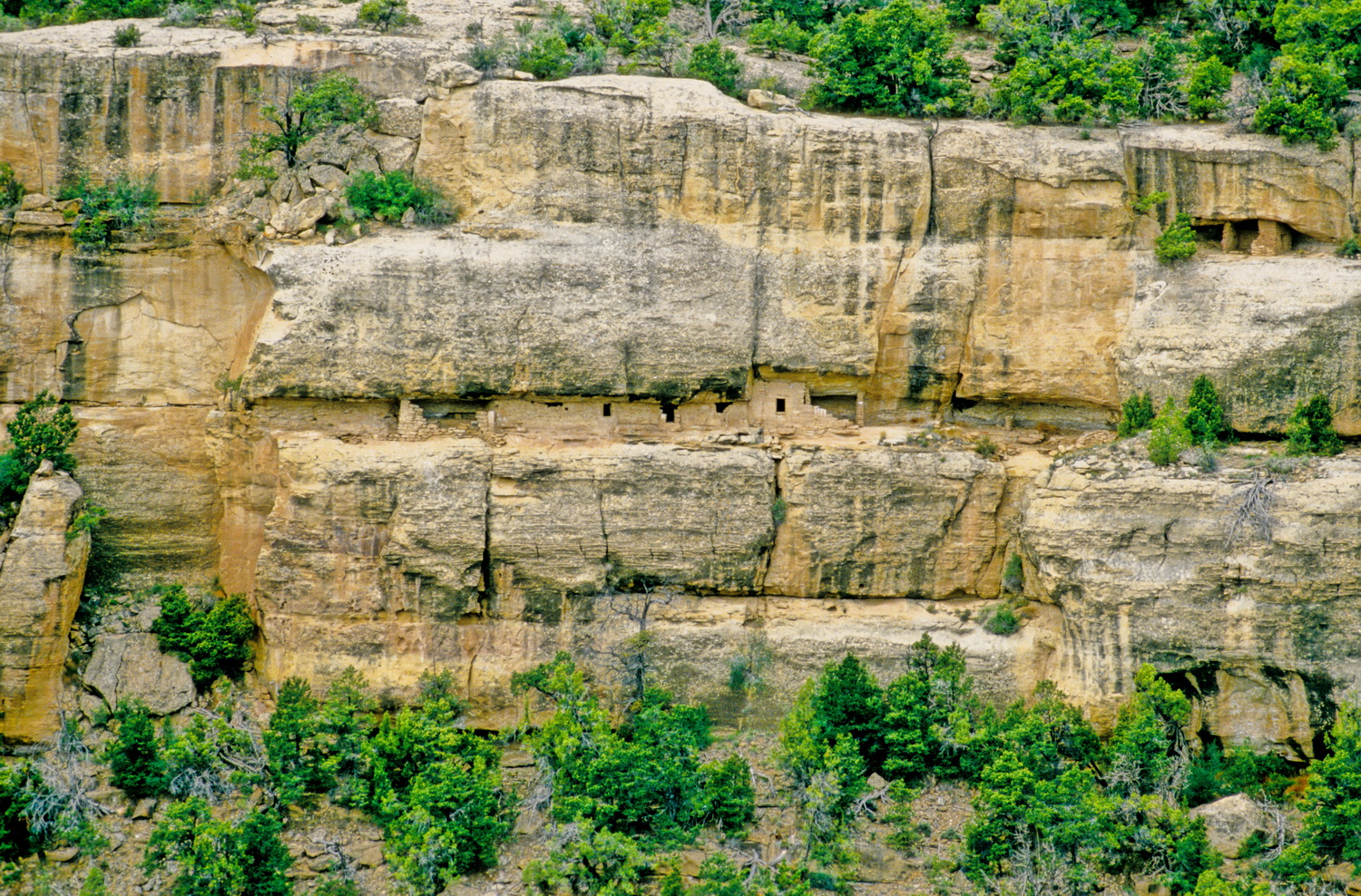 Wir entscheiden uns zu einer von einem Ranger geführten Tour zum „Balcony-House“. Über Leitern gelangen wir in die Behausungen und erhalten viele Informationen über die Menschen die lange vor der Entdeckung Amerikas hier gelebt haben. Wie der Name schon vorgibt hat ein Haus tatsächlich vorstehende Balken einer Zwischenetage, die als Balkon genutzt wurden. Eine weitere Wohnanlage sehen wir vom Far-View- Point und wenn man genau hinsieht erkennt man überall in den Felswänden Hinweise auf Wohnstätten der Anasazi.