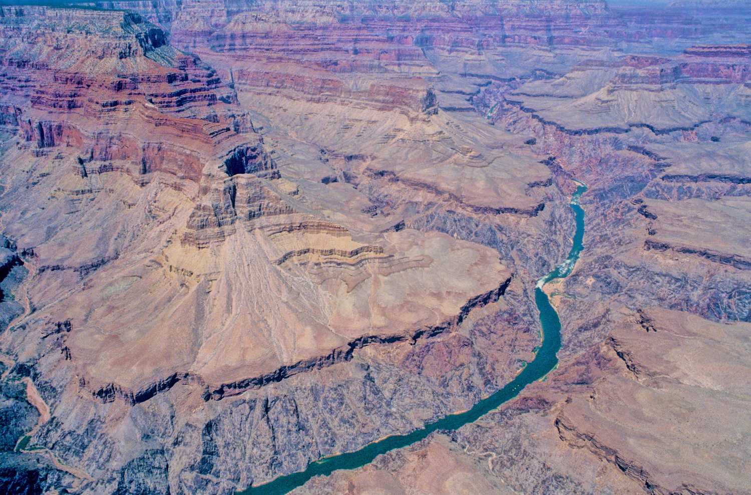 Um 10:50 Uhr starten wir und erhalten für 90 Dollar/Person einen großartigen Überblick von oben in diese gigantische Schlucht. Der Flug dauert 30 Minuten mit einer Überquerung bis zum North- Rim als Umkehrpunkt. Auf dem Colorado können wir die Schlauchboote von Rafting- Gruppen erkennen. In 5-6 Millionen Jahren hat sich der Colorado tief in die Erdgeschichte eingegraben, wobei der Hauptteil der Tiefenerosion in den letzten 2 Millionen Jahren erfolgte. Wir gehen am Ende des Flugs noch etwas einkaufen und fahren am Yavapai-Point vorbei zum Yaki-Point.