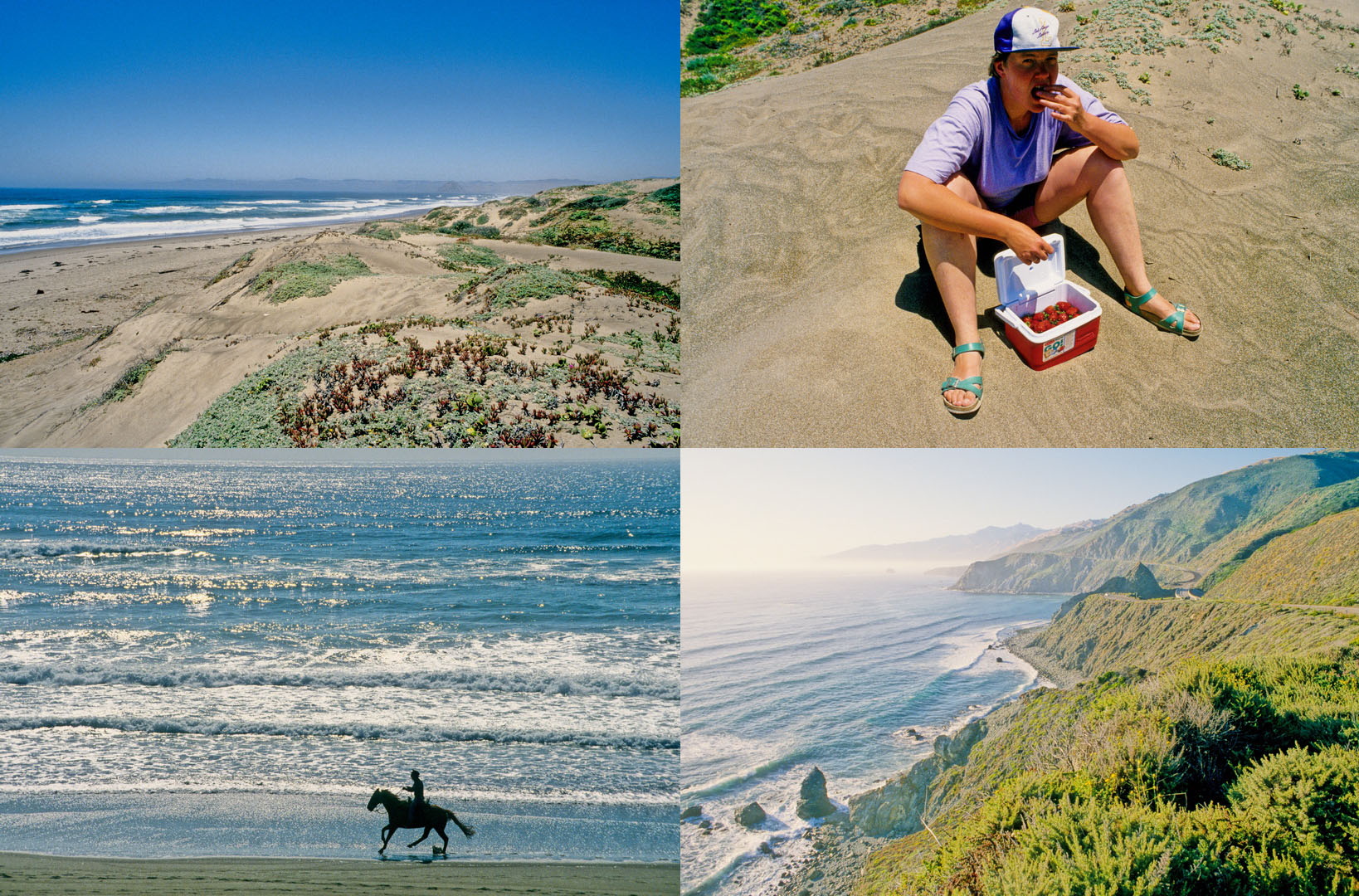 Am Donnerstag fahren wir auf der 101 Nord in San Luis Obispo auf den berühmten Pazifik-Highway N°1. Wir kaufen uns eine Riesenportion Erdbeeren und Teilchen, die wir in den Dünen am Strand im Montana de Oro- State-Parc vertilgen. Danach liegen wir eine Weile in der Sonne und bekommen dann Lust auf ein Bad im Meer. Wir hätten nicht gedacht, dass der Pazifik durch den Alaska-Strom so kalt ist, dass es an den Beinen schmerzt. Um 17:30 Uhr geht es weiter entlang der Steilküste der Santa-Lucia- Range über den Highway N°1 Richtung Big Sur. Wir finden vor Monterrey südlich des Big Sur, hoch auf den Klippen die Lucia-Lodge, wo wir den Abend und die Nacht verbringen. Die Sonne haben wir heute am Strand unterschätzt, was uns ein ordentlicher Sonnenbrand quittiert.