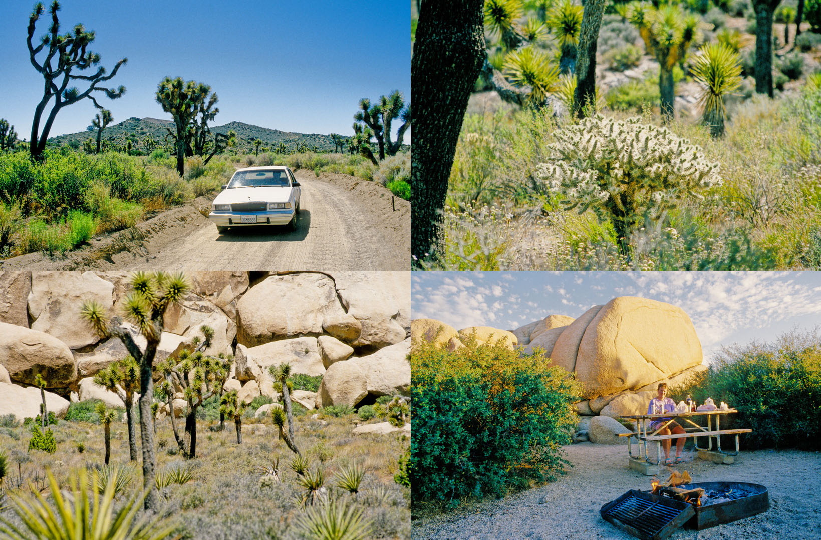 Weiter auf der Interstate 40 überqueren wir den Colorado in Topcock als Staatsgrenze zu California. Kurz vor Needles zweigen wir auf die Cal.95 und dann auf die Cal.62 West ab. Wir durchfahren die Mojave- Wüste bis zum Wüsten- Städtchen Twentynine- Palms. Es ist hier wieder sehr heiß, wir kaufen für unser Abendessen ein und suchen das Oasis- Visitor-Center im Norden des Joshua-Tree- NP auf. Auf dem Campground „Jumbo Rocks“ errichten wir unser Zelt und befeuern die Grillstelle für ein abendliches BBQ. Auf unserer Picknickbank arbeiten wir mein Tourenbuch auf, das mir auch nach über 30 Jahren noch die Möglichkeit bietet diesen Bericht mit all den Erinnerungen an diese Reise zu schreiben.