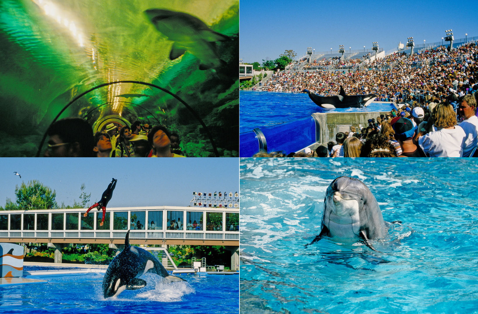 Am Dienstag fahren wir noch einmal zur Mission-Bay. Wir kaufen tüchtig ein, denn für Jeans, T- Shirts & Co sind die Preise 1994 in USA deutlich günstiger als bei uns in der alten Welt, vor allem bei dem günstigen Wechselkurs. In der Mission-Bay- Area steht mit Sea-World ein weiterer Tierpark auf unserer Agenda. Hier dreht sich alles um die Bewohner der Welt unter Wasser, wobei die Superstars die Orcas sind, die in einer absolut spektakulären Show vorgeführt werden. Bei den Sprüngen der Giganten bleibt in den ersten vierzehn Zuschauer- Reihen niemand trocken. Aktuell hat Sea-World noch Orcas, die auf Druck von Tierschützern nicht mehr mit der damaligen „Zirkus“- Show vorgeführt werden. Ein Glastunnel führt durch das Hai- Becken und macht Augenkontakt mit den Raubfischen möglich.