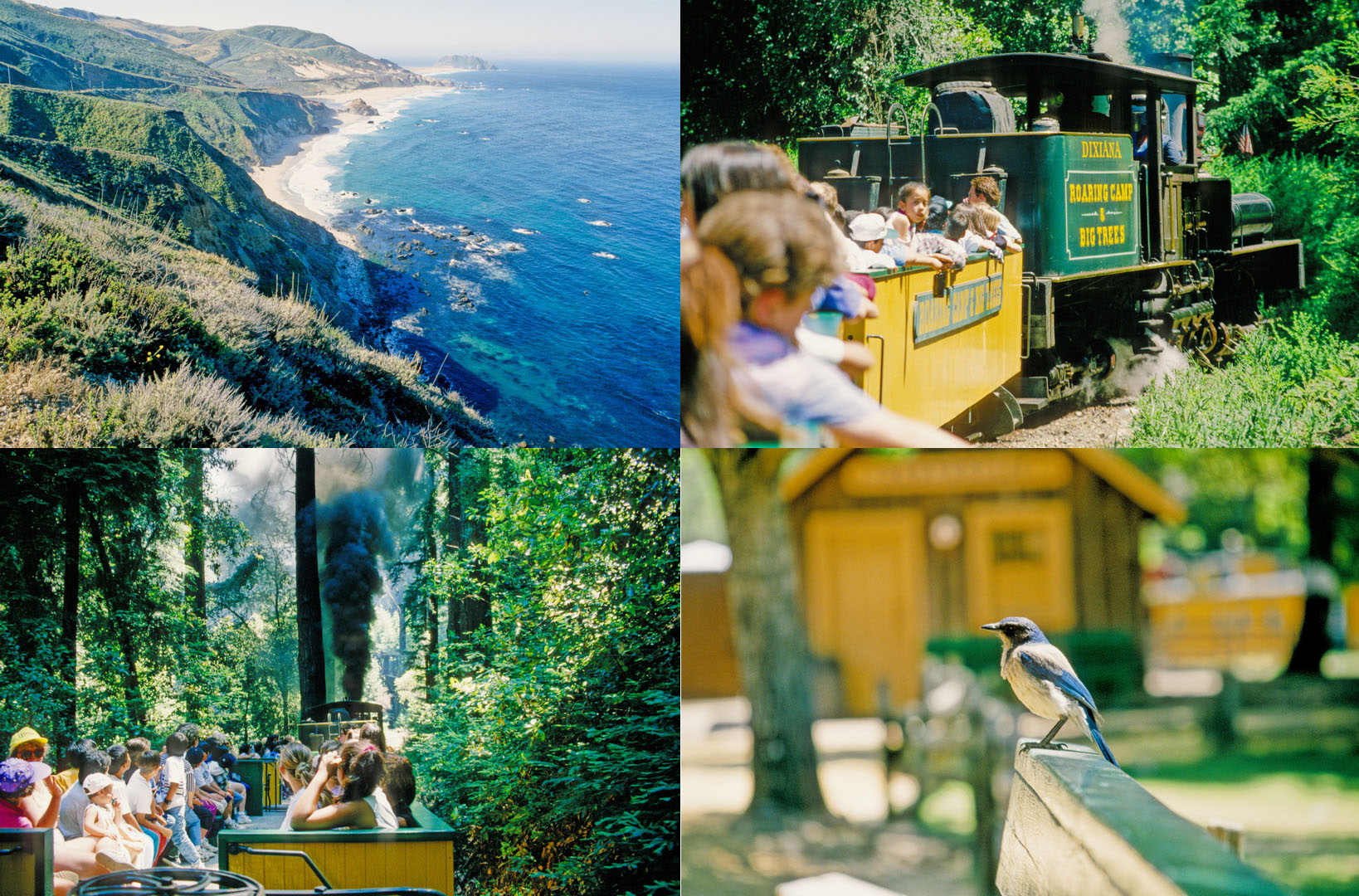 So far- So good- jetzt rächt es sich, dass ich meinen Aufschrieb nicht bis zum Rückflug am Samstag fortgeführt habe. Anhand meiner Fotodokumentation sehe ich, dass wir die Küste weiter rauf bis Santa Cruz zur Roaring-Camp & Big-Trees-Narrow-Gauge- Railroad in Felton fahren. Wir unternehmen hier eine Fahrt auf einer 5,25 Kilometer langen Schmalspurstrecke mit einem historischen Dampf- Museumszug. Die Lokomotive „Dixiana“, eine Shay-Lokomotive mit zwei Drehgestellen wurde im Jahr 1912 gebaut. Wir fahren mitten durch einen Redwood-Sequoia Wald und hinterlassen eine gewaltige Rauchsäule.