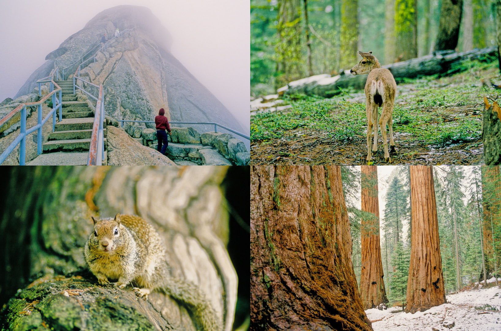 Mit 350 in den Granit geschlagenen Stufen besteigen wir die markante Granitkuppel des Mono- Rock, von dessen Gipfel 2050m es eine grandiose Aussicht auf die High- Sierra geben soll- bei gutem Wetter, wir befinden uns hier oben aber leider in dichtem Nebel. Beim nächsten Halt im Giant-Forest- Village machen wir einen wunderschönen Rundweg durch den Sequoia- Wald über den angeschneiten Bear-Hill zurück zum Village.