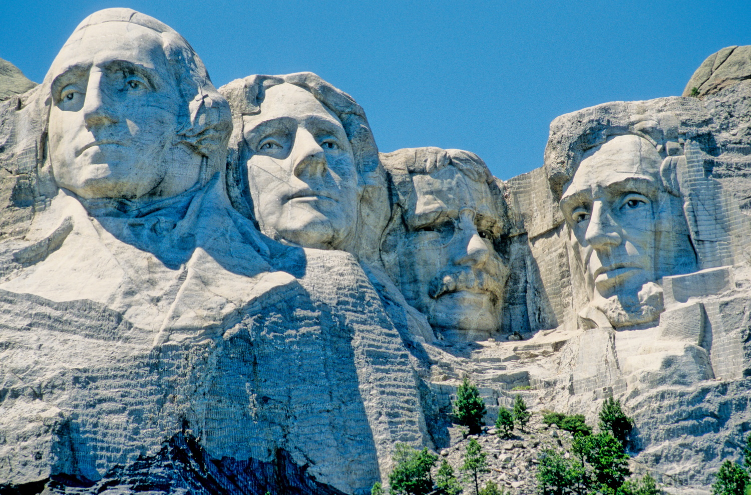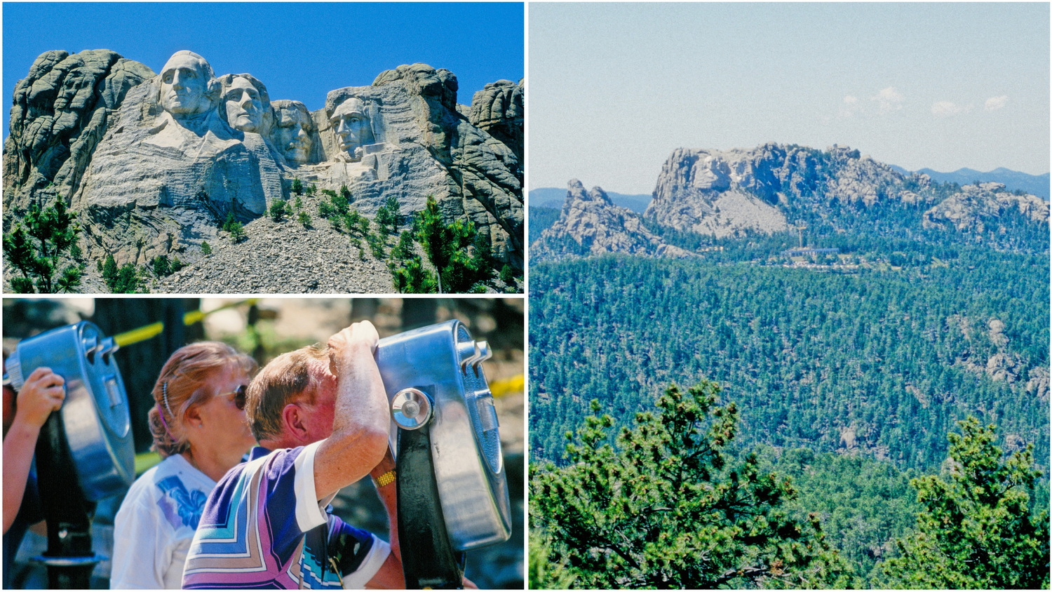 Am Montag stehen wir zwar auch wieder früh auf, lassen uns aber viel Zeit auf unserem idyllischen Platz. So wird es 12:30 Uhr bis wir alles abfahrbereit verstaut haben. Das nächste Ziel ist der berühmte Mount Rushmore, den wir über die 385 und 16a erreichen. Das berühmte National-Monument, das in einer Felswand die etwa 18 Meter hohen Köpfe der vier Präsidenten George Washington, Thomas Jefferson, Theodore Roosevelt und Abraham Lincoln zeigt entstand mit einer 14-jährigen Bauzeit zwischen 1927 und 1941. Der 1745 Meter hohe Berg ist ein heiliger Ort für die Lakota-Sioux. Seinen Namen verdankt der Berg einem New Yorker Anwalt, der die Goldschürfer-Rechte für den Berg erworben hatte. Schon aus der Ferne imponiert die bildhauerische Meisterleistung über den Hügeln der Black Hills. Entlang von Fress- und Souvenirbuden laufen wir vom großen Parkplatz zum Aussichtspunkt am Fuß des Nationalheiligtums. Es ist ein Pilgerort, an dem sich die Touristen aus Nah und Fern an den Ferngläsern rangeln.
