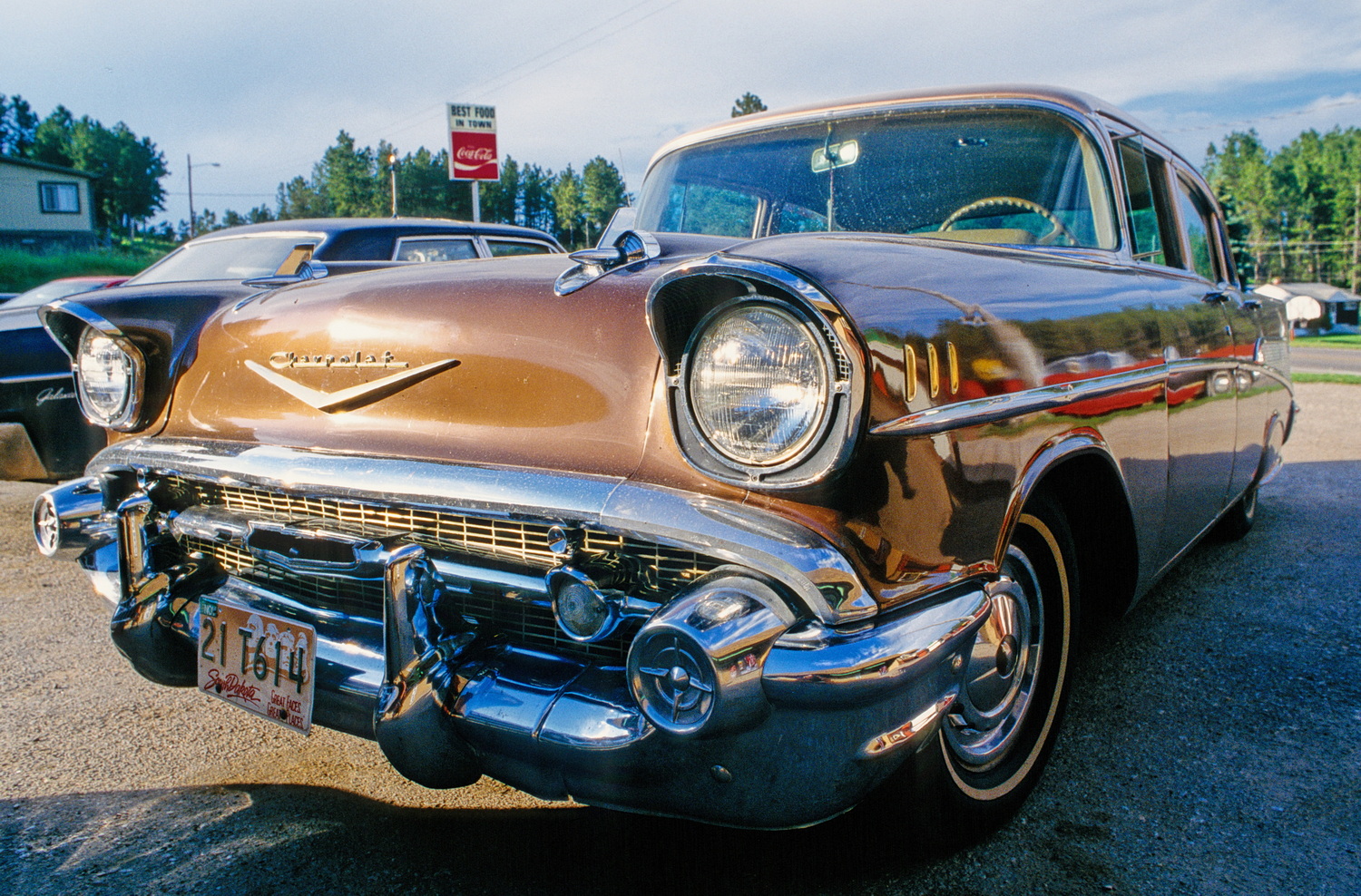 Der Campground am Devils Tower ist bis auf zwei Plätze am Toilettenhaus belegt. Wir fahren ein paar Meilen weiter auf der 24 bis Hulett und checken im Hulett- Motel für 40 Dollar ein. Abendessen gibt es im Ponderosa- Café. Die Leute sind nett und das Essen ist gut. In dem Diner finden wir uns am Sonntag auch kurz nach neun zum Frühstück ein. Wir sitzen bei Eggs, Bacon und Sausages in dem Raum, der mit seiner typischen Saloon- Tür vom Ambiente her auch als Drehort für einen Western herhalten könnte. Draußen nähert sich der untrügliche sonor hämmernde Sound eines fetten Harley-V-Motors, der direkt vor der Tür verstummt. Nach dem „Klack“ des Seitenständers wirft eine Gestalt ihren Schatten durch die Saloon-Tür. Ich glaub ich sehe nicht recht- Auf Westernstiefeln schreitet ein Kerl in den Raum, an seiner rechten Hüfte ein Colt im Holster. Während ich kurz schlucke und auf seine Ansage „Brieftasche raus!“ warte, grüßt der „Desperado“ freundlich, setzt sich hin und bestellt einen Kaffee.