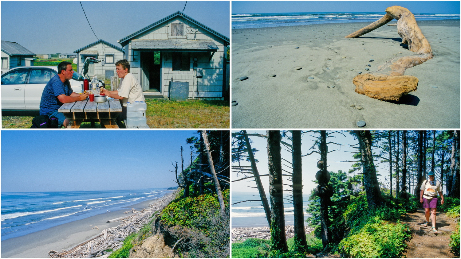 Wir verlassen Mount St. Helens in Richtung Pazifikküste über Hwy 12 und I5 Nord nach Chehalis, über Hwy 6 nach Raymond und Hwy 105 bis Grayland, wo wir im Grayland- Motel an der Pazifik- Küste einchecken. Eine halbe Meile nach Norden gehen wir im „Sea Star“ essen. Während wir auf unser Essen warten bekomme ich Übelkeit und Kopfschmerzen, so dass ich mein Essen halb zurückgehen lassen muss. Möglicherweise habe ich heute zu viel Sonne ab bekommen. Am Freitag schlafen wir aus, mir geht es wieder gut und nachdem Doro ihr Geburtstagsgeschenk ausgepackt hat frühstücken wir vor unserem Häuschen in der Sonne.