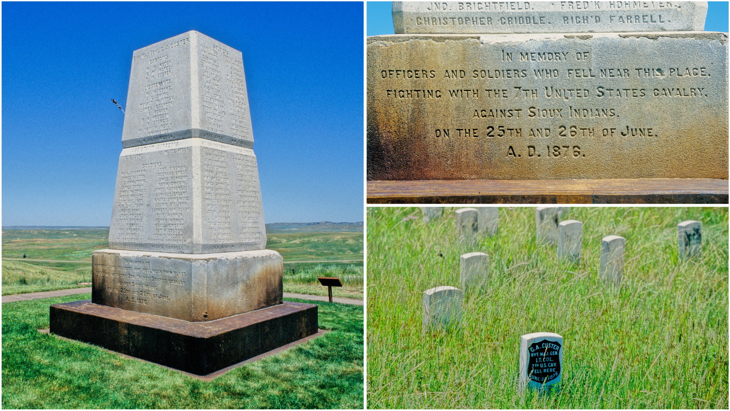 Es ist Samstag, seit 2 Wochen sind wir nun schon unterwegs. Wir frühstücken auf dem Zimmer und kommen gegen 10:15 Uhr los. Hwy212 bringt uns auf die I90 Ost nach Billings. Wir landen ungewollt auf der I94 bis nach Custer, um dann mit der 47 in Hardin wieder auf die I90 Süd zu gelangen. Mit der Ausfahrt „Little Bighorn Battlefield“ verlassen wir den Interstate-Highway zum National Monument auf dem Gelände, auf dem die Schlacht am Little Bighorn im Sommer des Jahres 1876 stattfand. Unter dem Kommando George Armstrong Custers wurden am Little Bighorn fünf Kompanien des 7. US-Kavallerie-Regiments vernichtend geschlagen. 950- 1200 Krieger der Sioux und Cheyenne- Natives standen knapp 600 Soldaten der Vereinigten Staaten gegenüber. Neben weiteren Häuptlingen waren die Anführer der „First Nation“ Sitting Bull und Crazy Horse. Bei der vernichtenden Niederlage der US- Kavallerie starben 268 Soldaten, 55 wurden verwundet. Auf der indigenen Seite fielen 40 Krieger und 80 wurden verwundet.