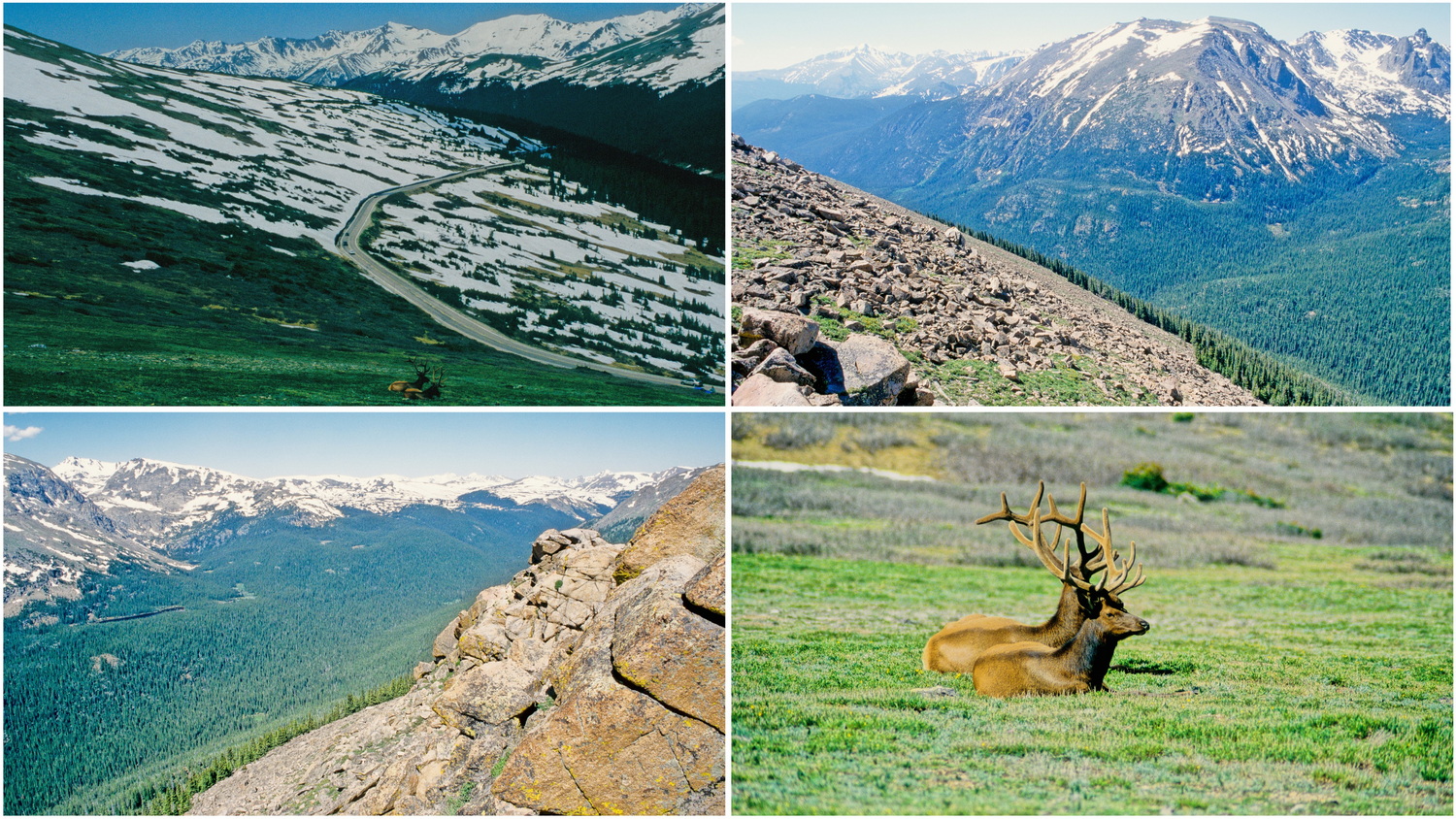 Wieder einmal ist es spät, als wir um 18 Uhr mit etwas mehr Gas als erlaubt nordwestlich auf die Interstate 25 Süd über Cheyenne und über Fort Collins in Colorado bis Loveland fahren. Hier, nördlich von Denver (CO) checken wir auf Hwy 34 Ost am Ende des Ortes im „Sands Motel“ ein und haben im „Summit“- Restaurant nebenan auch ein feines Abendessen. Am Mittwoch frühstücken wir schon vor 8 Uhr und machen uns ebenfalls zeitig auf den Weg über Hwy34 West zum Rocky Mountain- NP, wo wir durch die noch mit Schnee bedeckte Hochgebirgslandschaft nordwestlich von Denver cruizen. Am Beaver Meadows sehen wir die von Bibern errichteten Dämme, deren Erbauer wir aber nicht zu Gesicht bekommen. Im Park fahren wir über Pässe von bis zu 3700 Metern Höhe. Wir sehen kapitale Hirsche in den Bergwiesen liegen und verlassen den landschaftlich tollen Nationalpark, dem wir gerne noch mehr Zeit gewidmet hätten über Hwy 34 West, dann in südlicher Richtung mit Hwy 40 zum Interstate 70 Ost bis Idaho Springs.