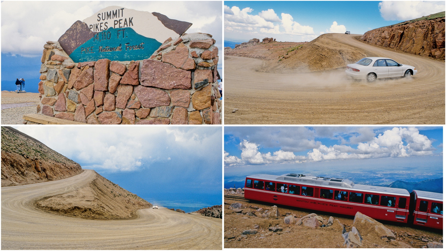 Von Cascade führt eine Maut- Straße hinauf auf den 4330 Meter hohen Pikes Peak. Die Straße ist eine Sand- Schotterpiste und wird seit 1916 jedes Jahr zum Austragungsort eines der berühmtesten Bergrennen der Welt. Die knapp 20 Kilometer führen über 156 Kurven vom Start auf 2862 Meter zum Gipfel hinauf. Der damals in Deutschland bekannte Rallye- Pilot Walter Röhrl stellte 1987 mit 10:47,850 Minuten einen Weltrekord mit seinem 600PS starken Audi Sport Quattro S1 auf. Nicht nur die Leistungsfähigkeit der Menschen lässt in der Höhenluft nach, auch Verbrennungsmotoren erhalten bei dem reduzierten Sauerstoff-Partialdruck in der Höhe einen deutlichen Leistungsverlust. Der heutige Streckenrekord der anliegt wurde 2018 von Romain Dumas mit dem elektrischen Volkswagen I.D. R Pikes Peak (680 PS) mit weniger als 8 Minuten aufgestellt. Auf der superbreiten Sandpiste hole auch ich mir den Kick und lasse unseren Hundai quer durch die Kurven driften. Mein „Race to the Clouds“ endet aber hinter einer Kurve mit der Ermahnung eines Rangers, der mich mit freundlichem Nachdruck bittet meinen Fahrstil zu disziplinieren. Schade- hat voll Bock gemacht 😉